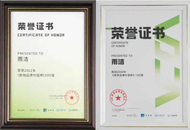 品牌荣誉|雨洁品牌连续两年荣膺新锐品牌100强